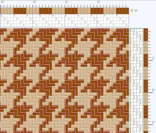 For example, I would like to say “repeat the pattern [1 2 3 4] 4 times” and it would generate the threading pattern for twill shown above.