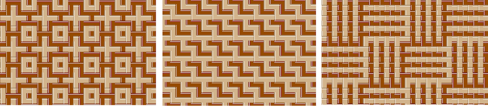 And here are three different designs using exactly the same color pattern (alternating dark & light colors), but slightly diferent weave structures.
