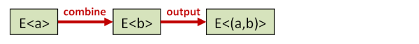 or E<a> -> E<b> -> E<a,b> for the tuple-combined version.