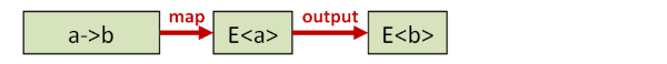 and a Functor (in the programming sense) is defined as a generic data type – E<T> in our case – plus a map function that obeys the functor laws.